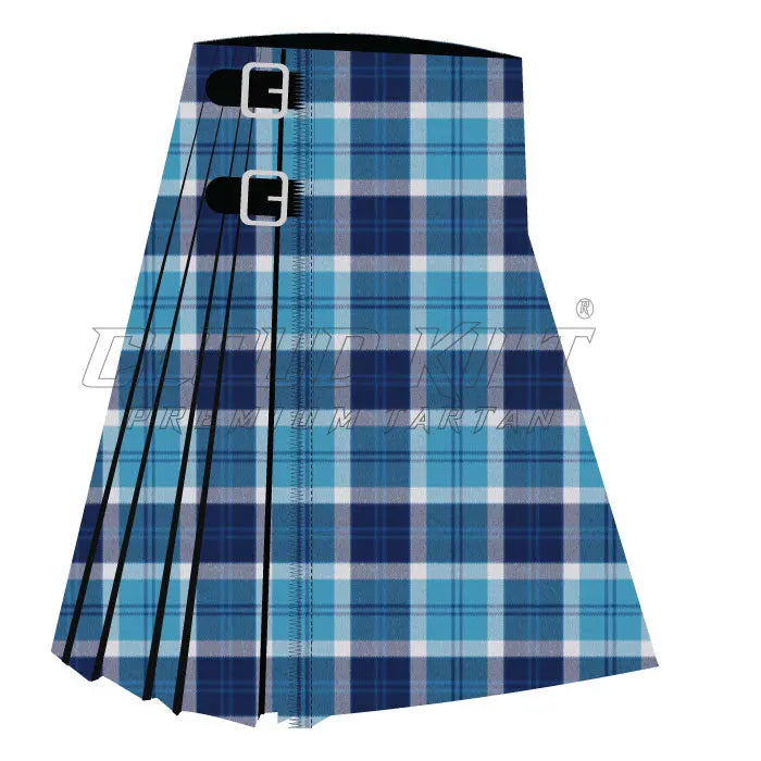 The Bannockbane Blue Two Premium Tartan Kilt is a masterpiece of Scottish craftsmanship. Crafted from the finest pure new wool, this kilt embodies the rich heritage of Scotland while offering a contemporary twist.