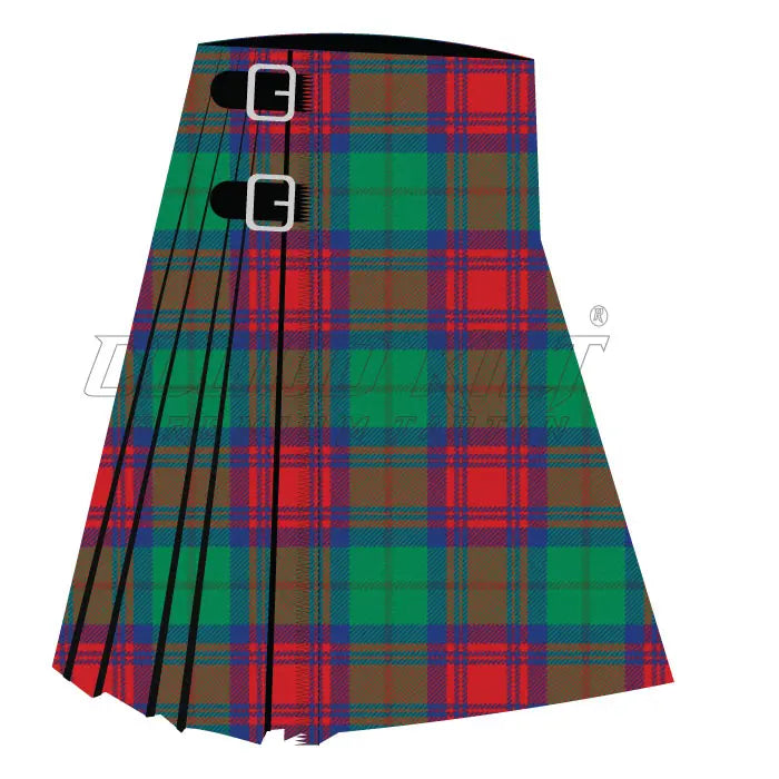 A Cranston Dress Tartan kilt is a traditional Scottish garment, distinguished by its use of the Cranston tartan pattern. This tartan, characterized by its vibrant green and navy blue base with a red overcheck, is associated with the Cranston clan and the historic Cranston region in Midlothian, Scotland.
