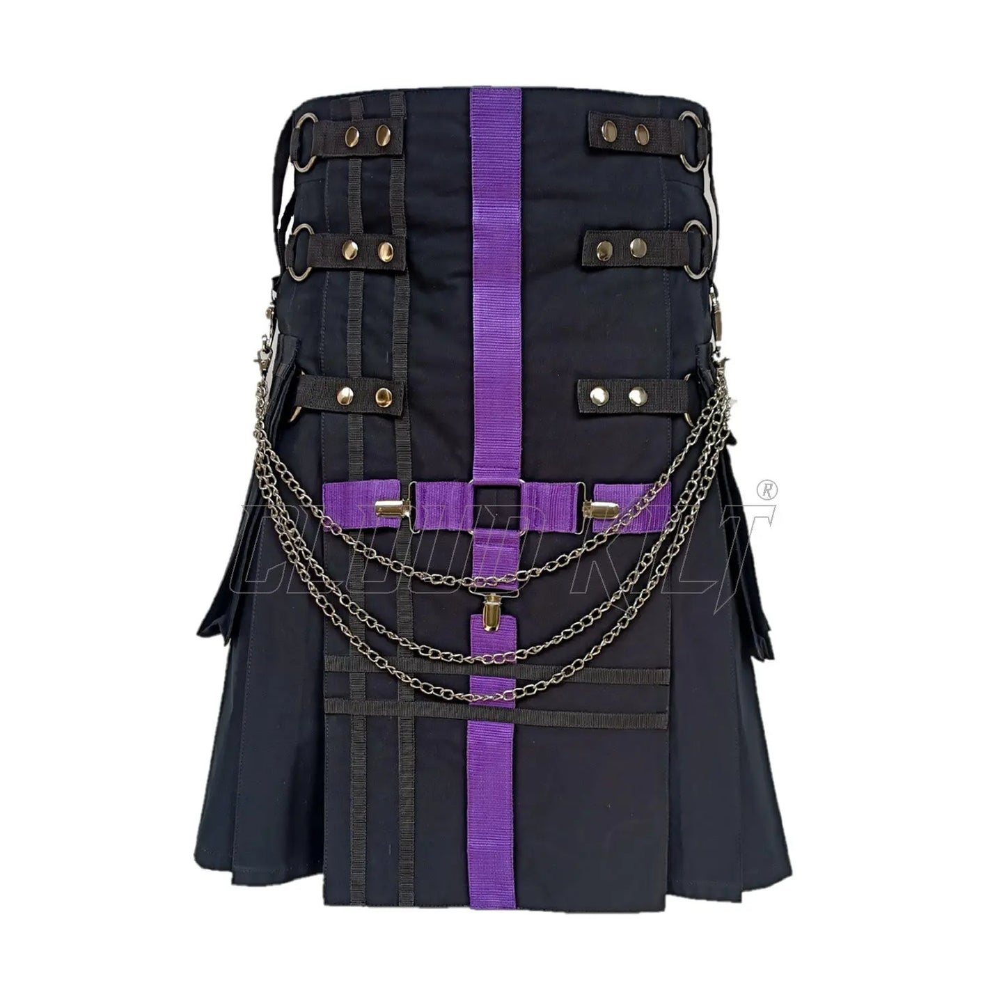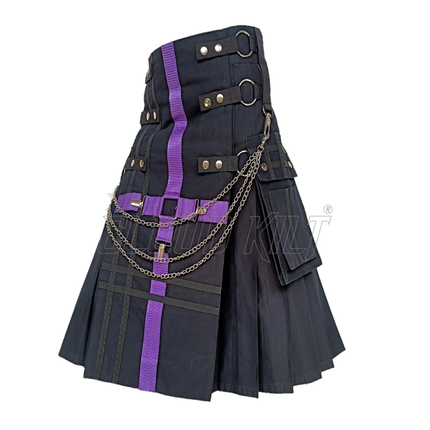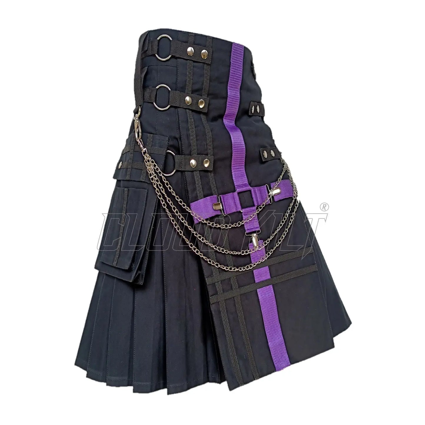A fashion utility kilt with chain is a unique take on the classic kilt, blending functionality with a touch of edgy style. Here's a breakdown of its typical features: