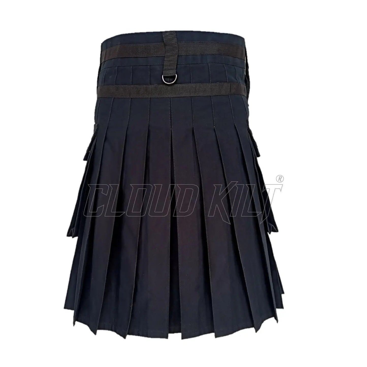 Tactical duty kilt made of 100% cotton jeans fabric. Two sided cargo pockets with full designed apron. Rust-free hardware material.