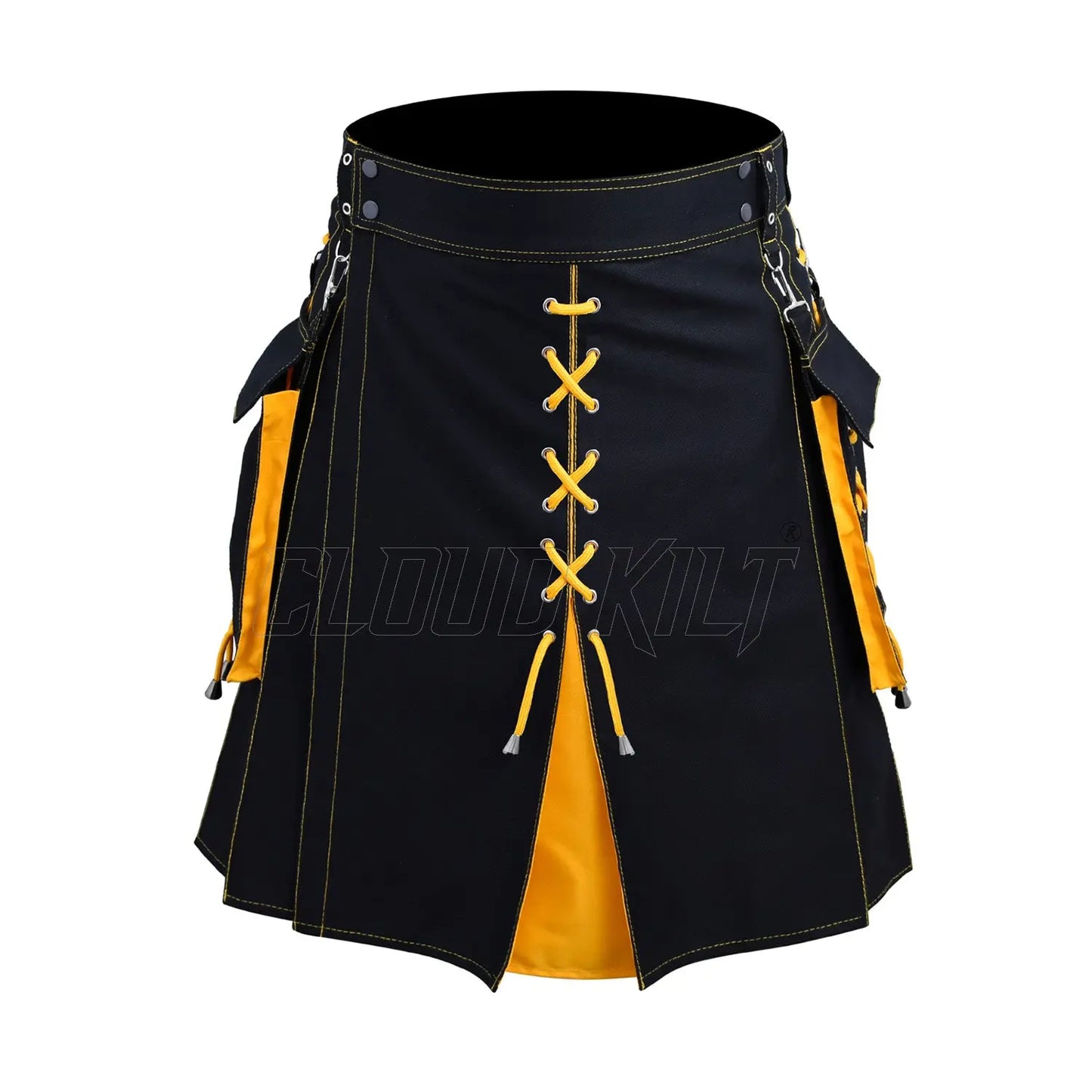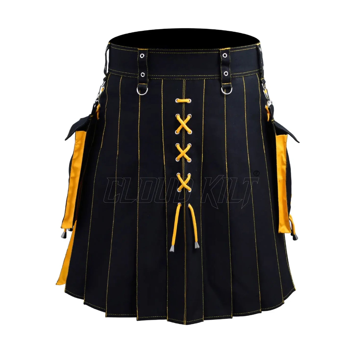 Key Features of a Hybrid Black and Yellow Utility Kilt