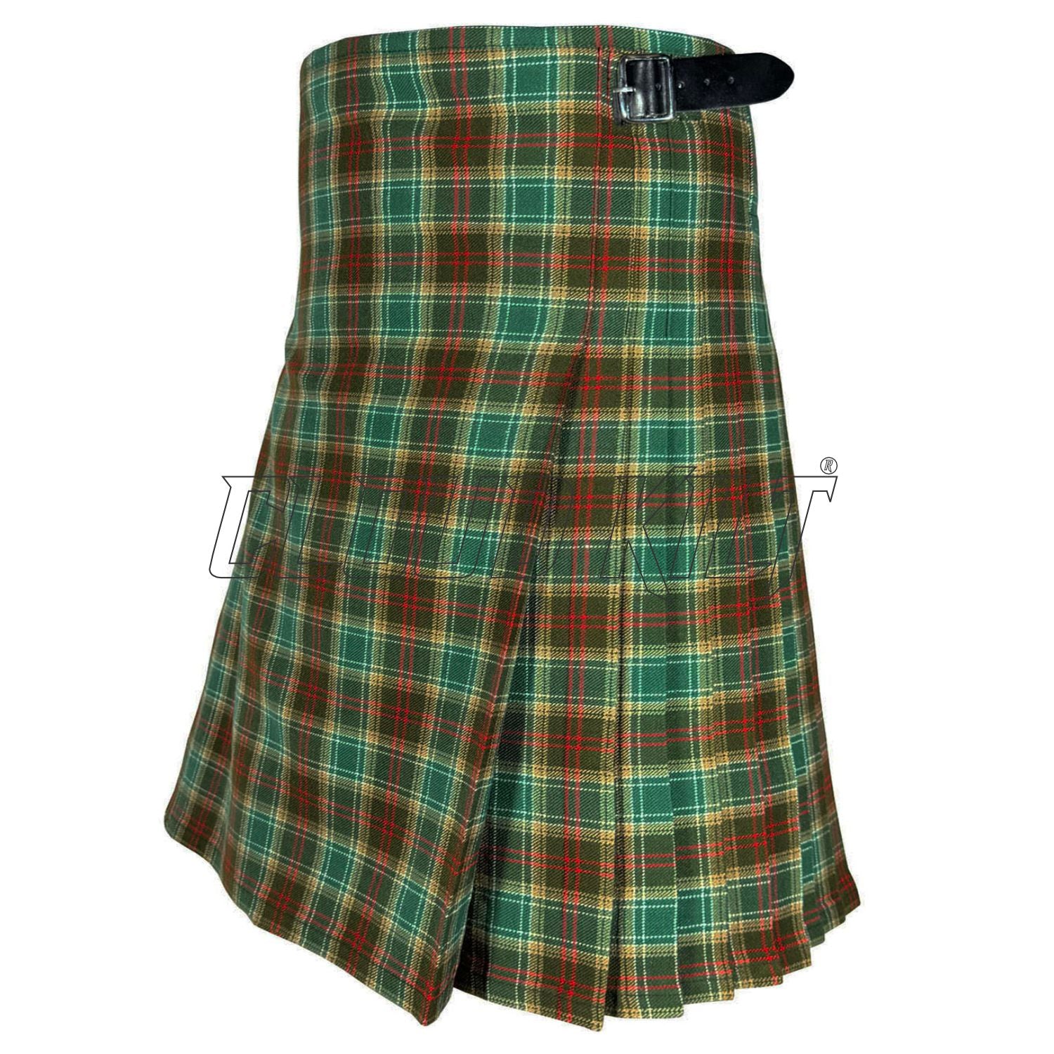Features knife pleats and belt loops for a traditional Scottish look.