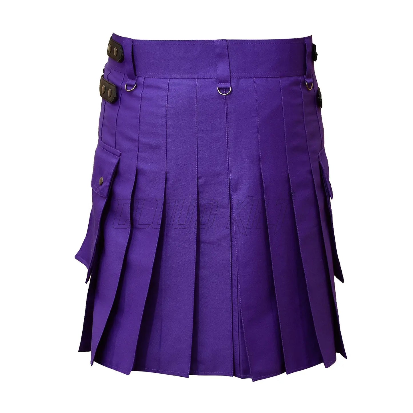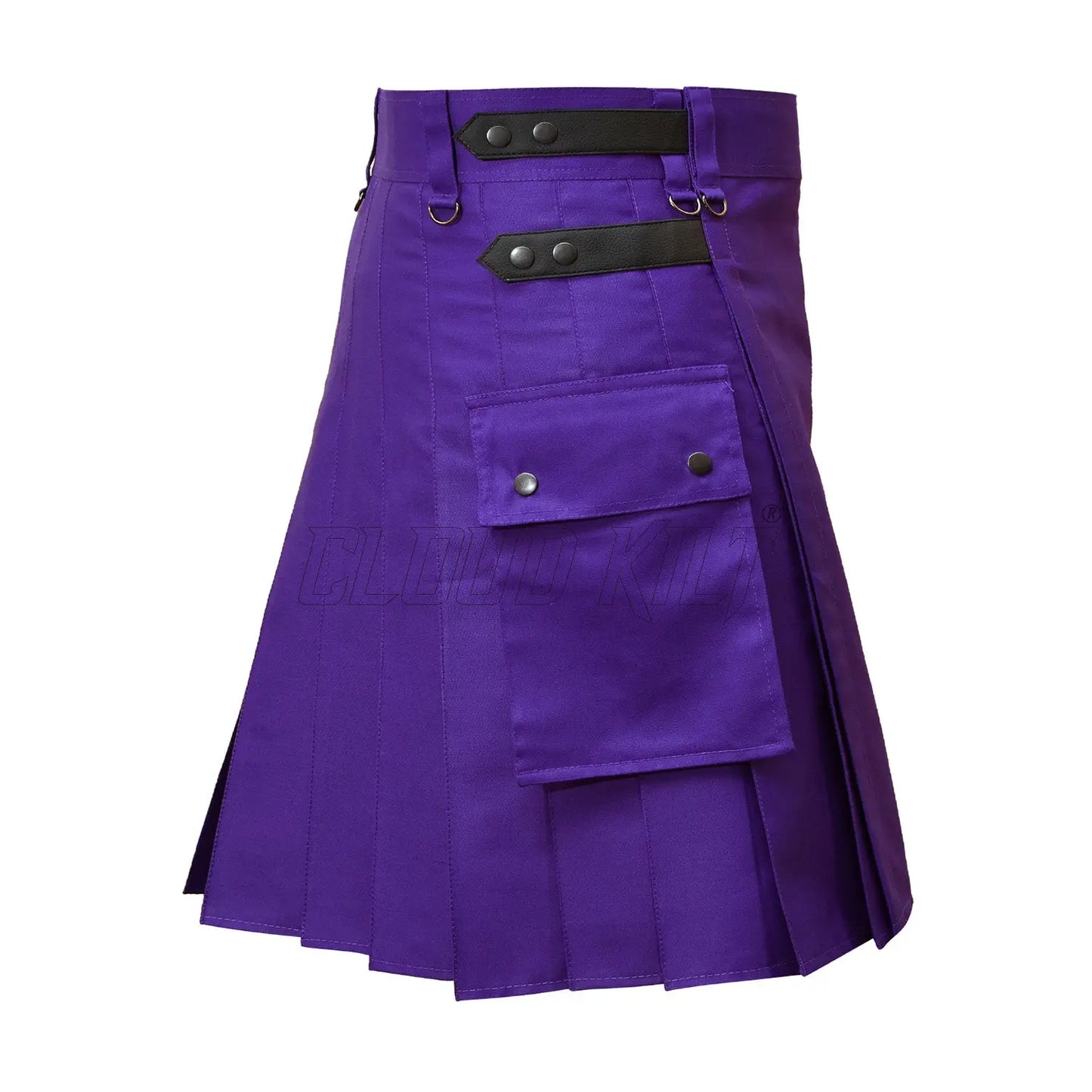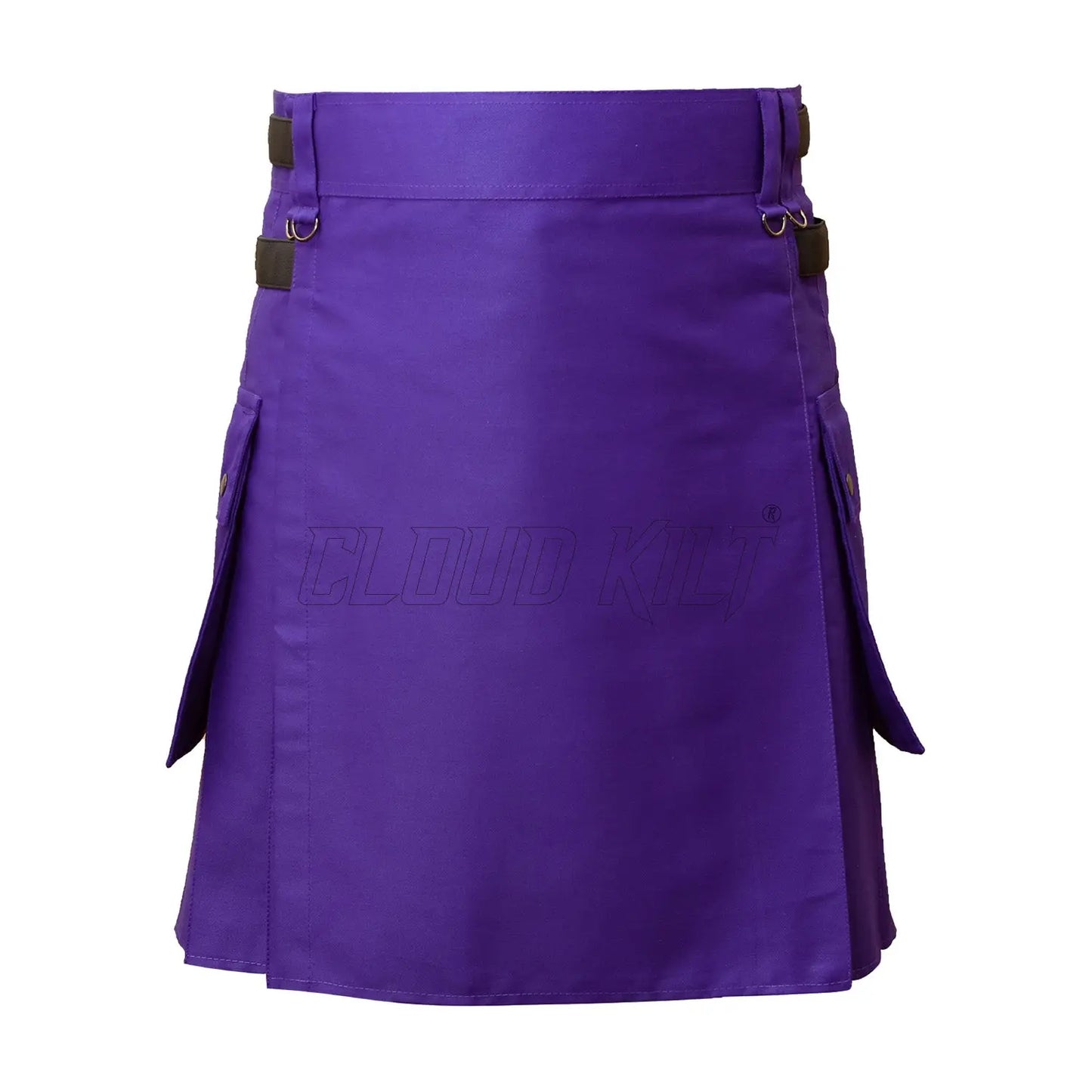 A deluxe modern purple utility kilt for men is a striking and contemporary take on traditional Scottish attire. It combines the comfort and practicality of a utility kilt with the bold, expressive nature of the color purple.